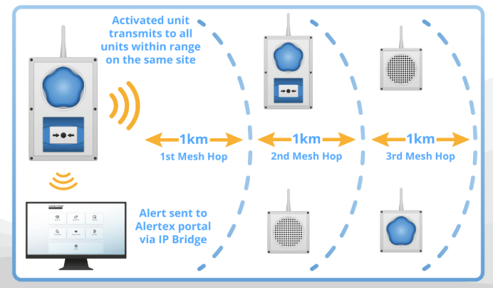a school office or a security control point – and when pressed, it tells every paired lockdown sounder and beacon unit to activate.